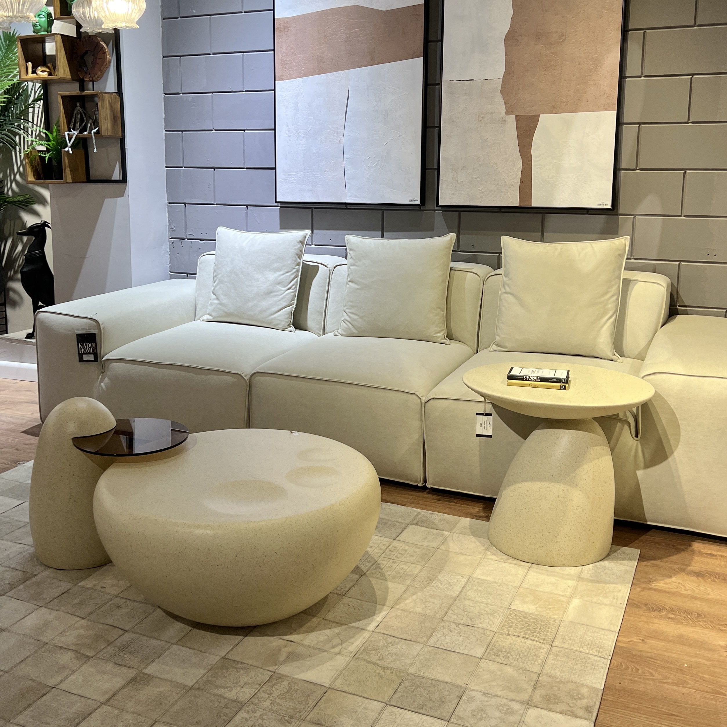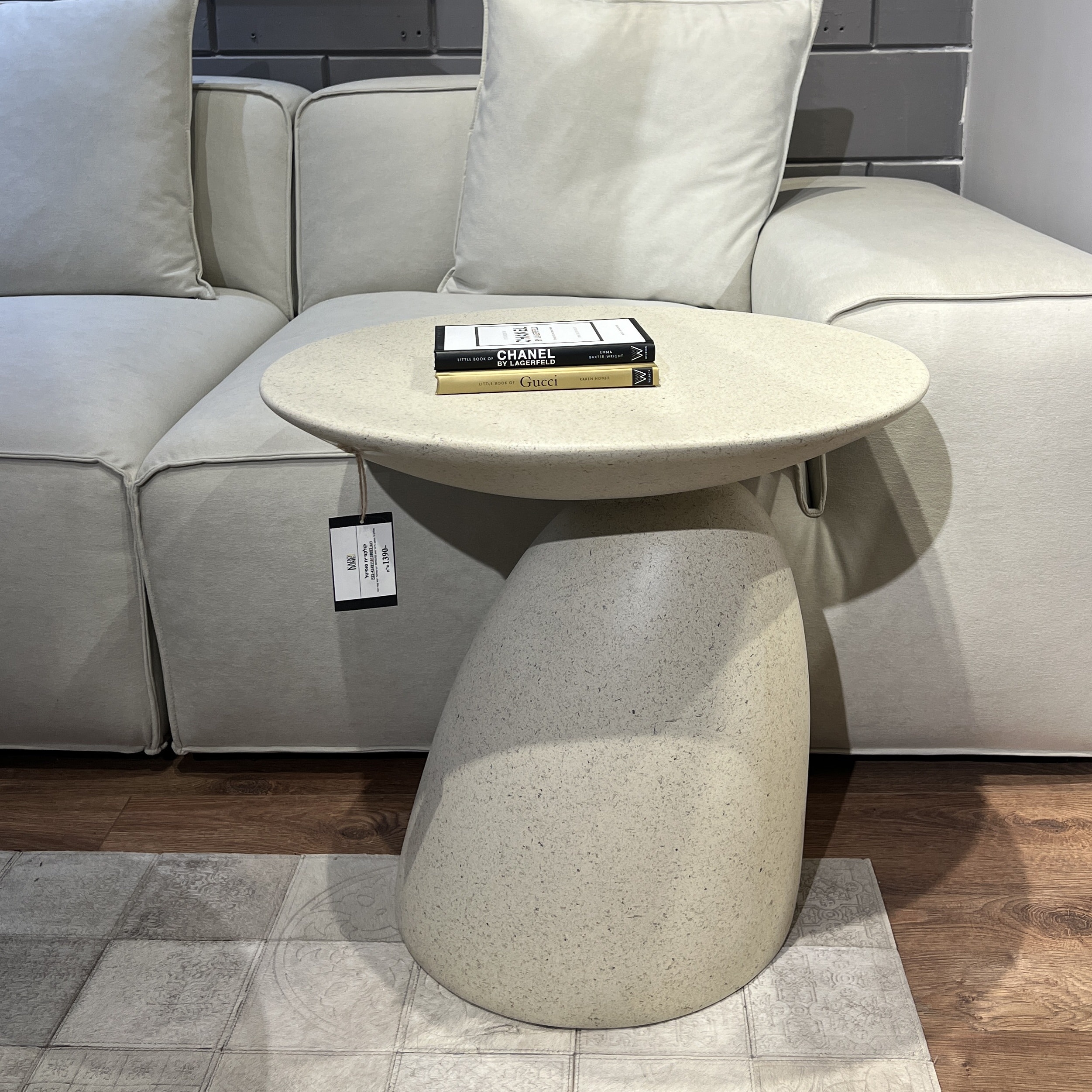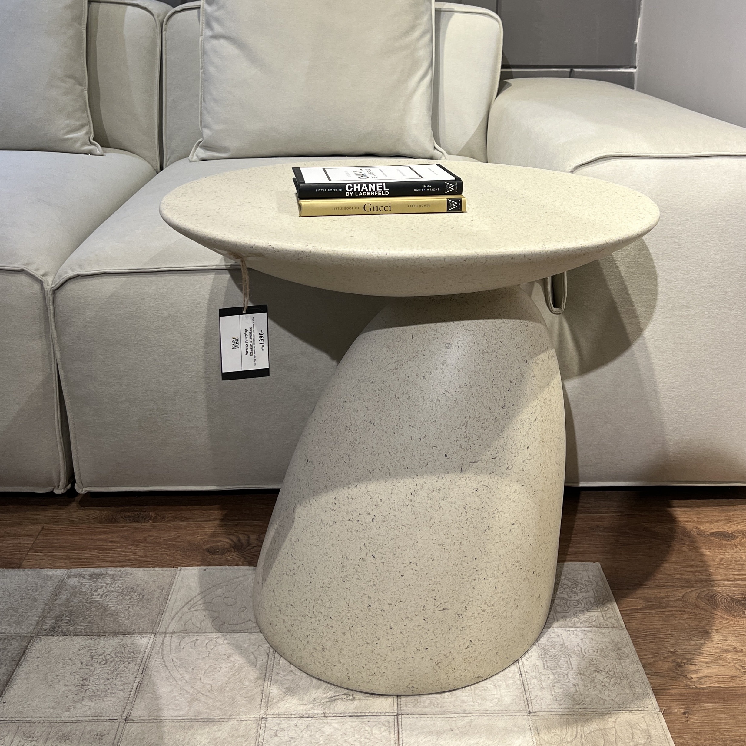 שולחן צד עגול בעיצוב יוקרתי ומושלם, בטקסטורת טרצו ייחודית, מעניק נוחות וסטייל בחלל.