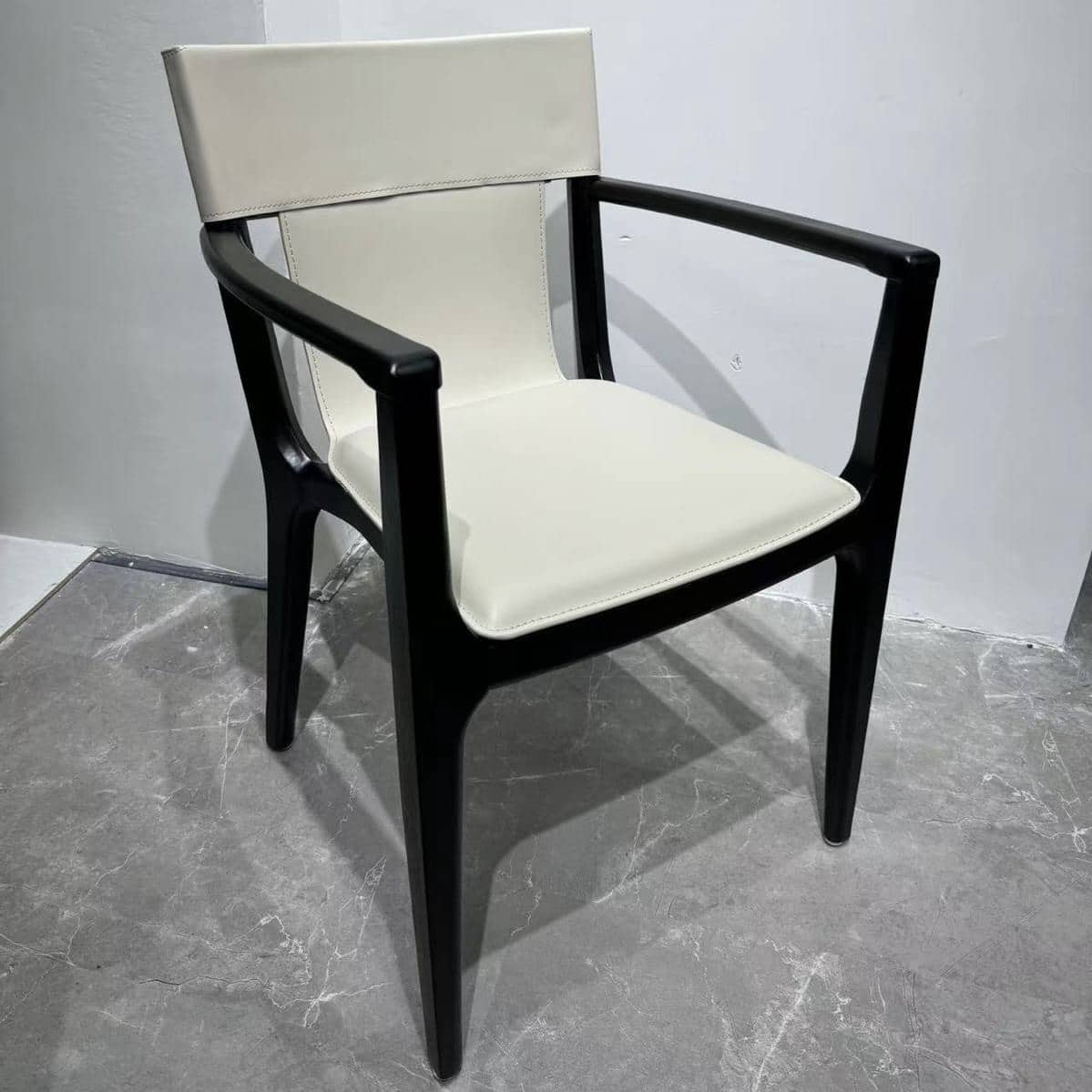 כורסא כיסא מיוחדת דגם ברטין בעיצוב מודרני, אלגנטי ועכשווי בשילוב עור תעשייתי בגוון אבן ורגל עץ שחורה מדויקת.