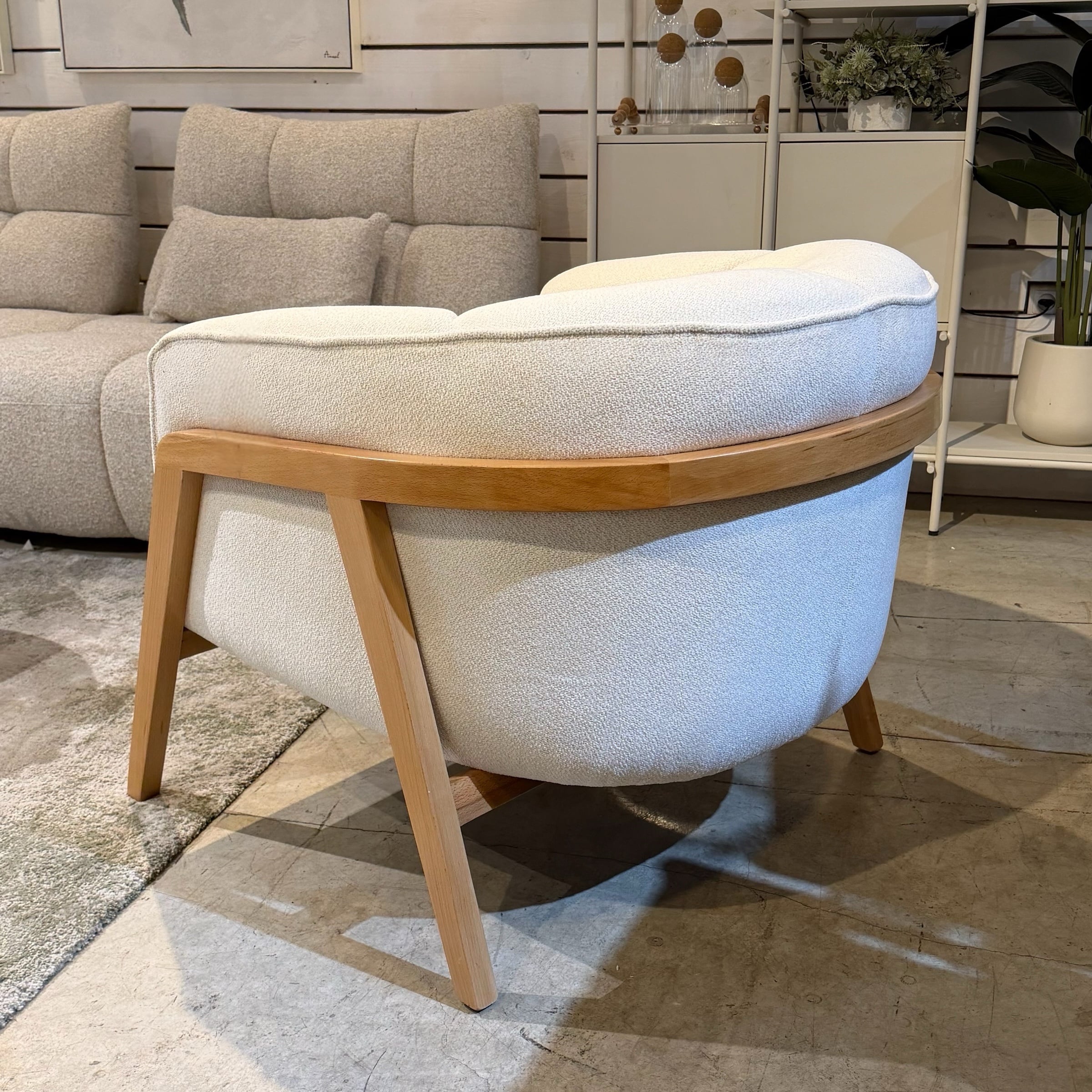 השילוב בין ריפוד בד איכותי לבין שלדת עץ אלון טבעי מעניק לכורסא מראה חם, טבעי ומודרני כאחד. בסיס העץ החשוף מוסיף טאץ’ עיצובי ייחודי והופך את הכורסא לפריט בולט בכל חלל – סלון, פינת ישיבה, חדר שינה או משרד מעוצב.