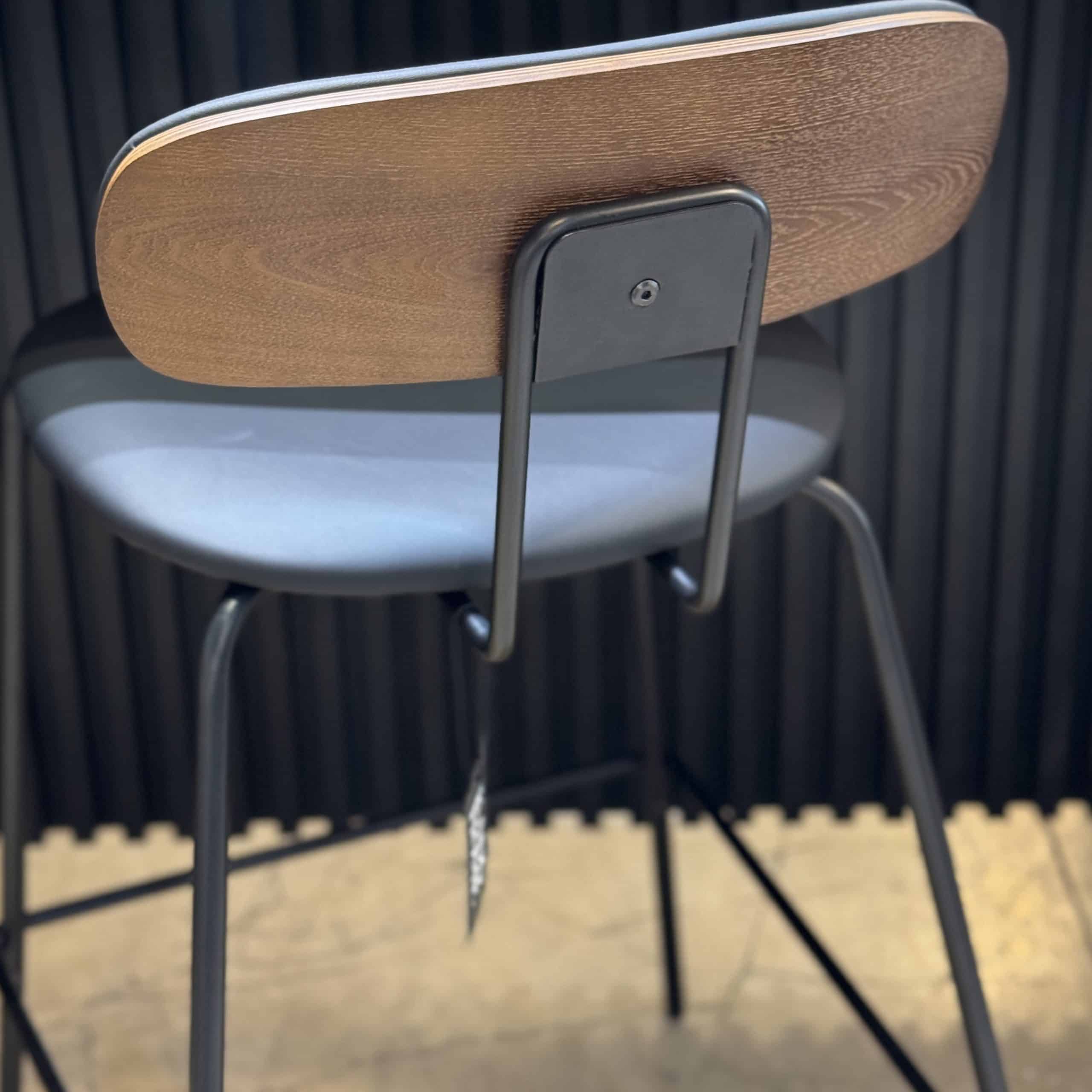 גב עץ ומושב בריפוד דמוי עור שחור.