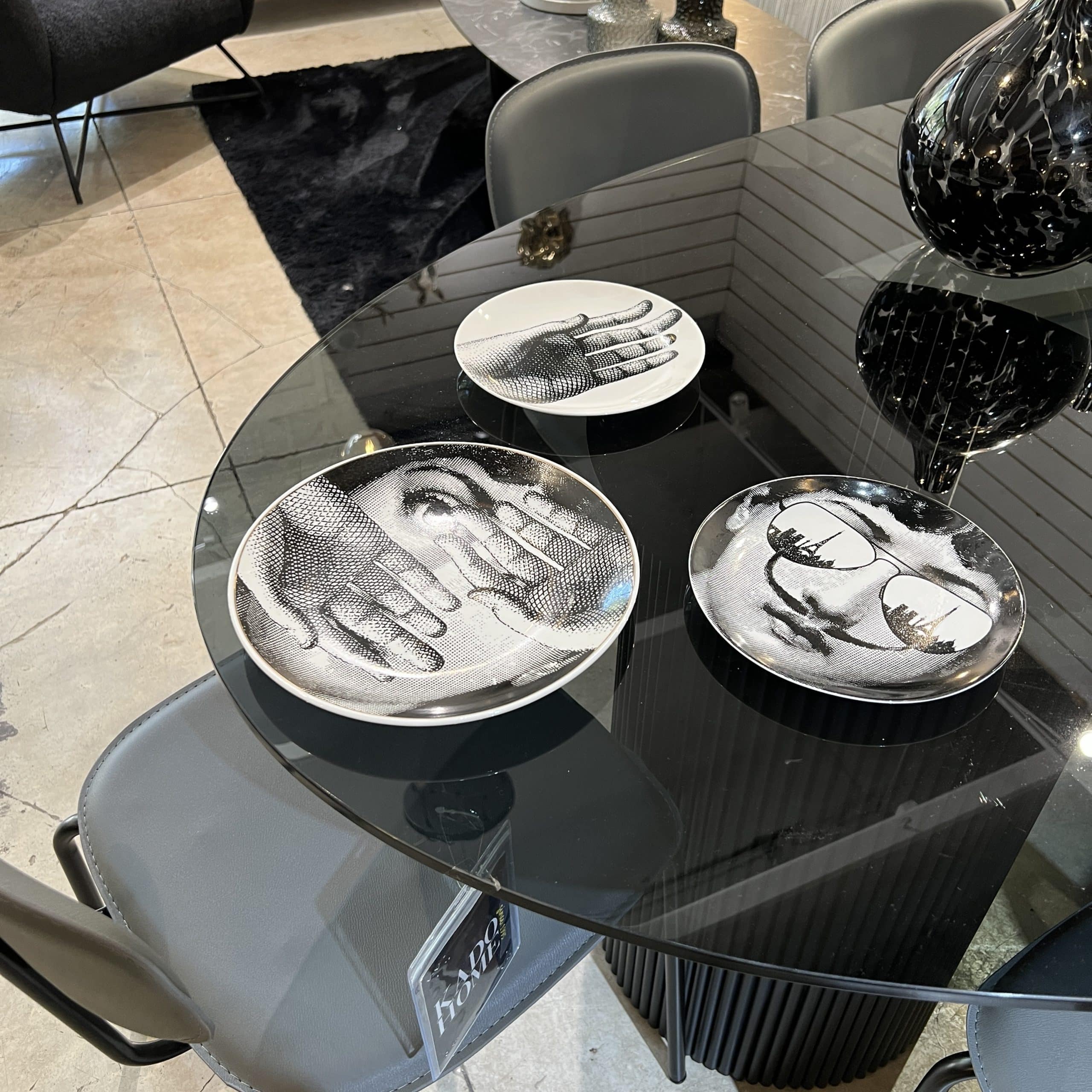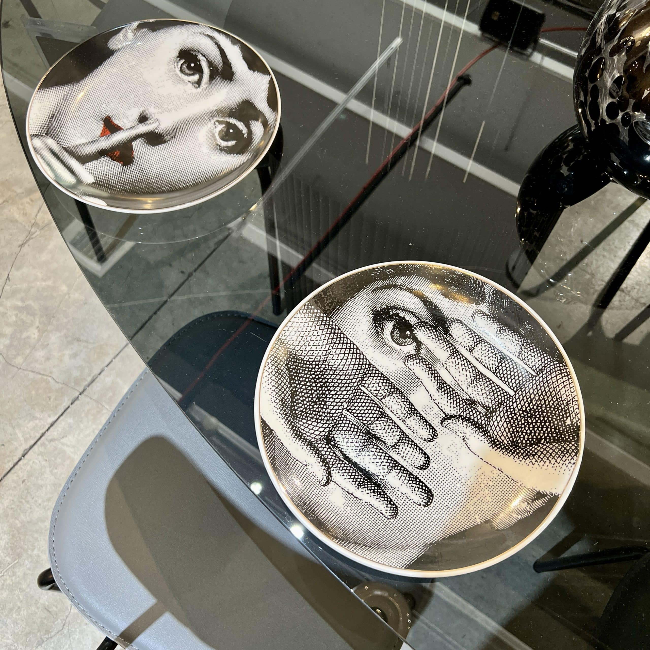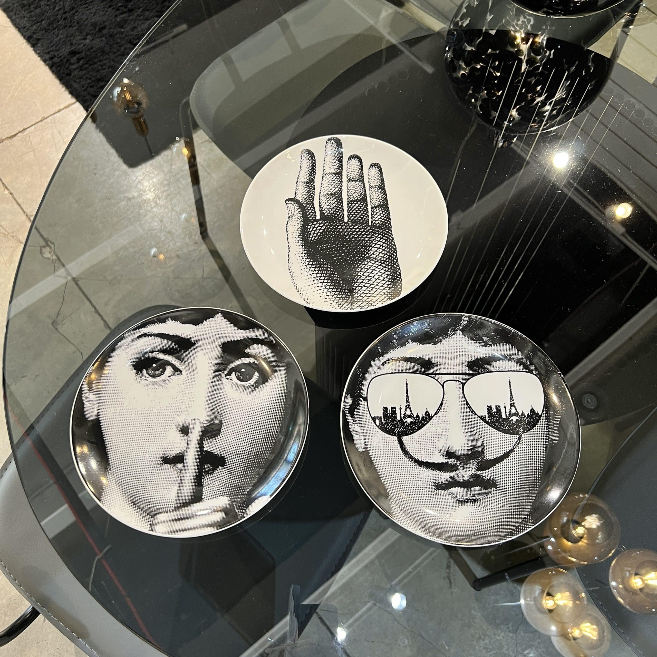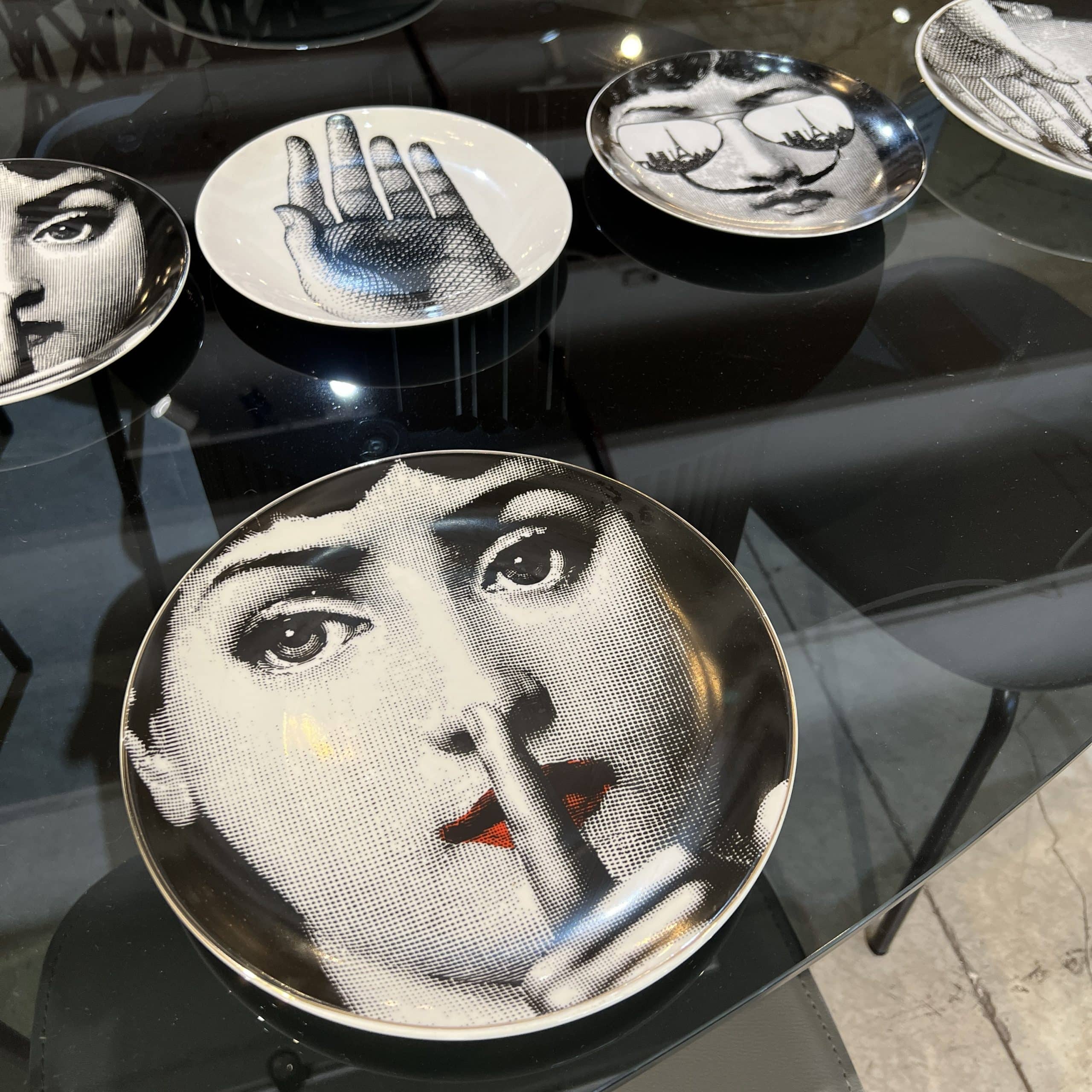 צלחות נוי לתליה על קיר או הגשה פורצלן מיוחדת ומרשימה בצבעי שחור לבן המציגה את פניה של המוזה של פיירו פורנאסטי, זמרת האופרה לינה קוואליירי.