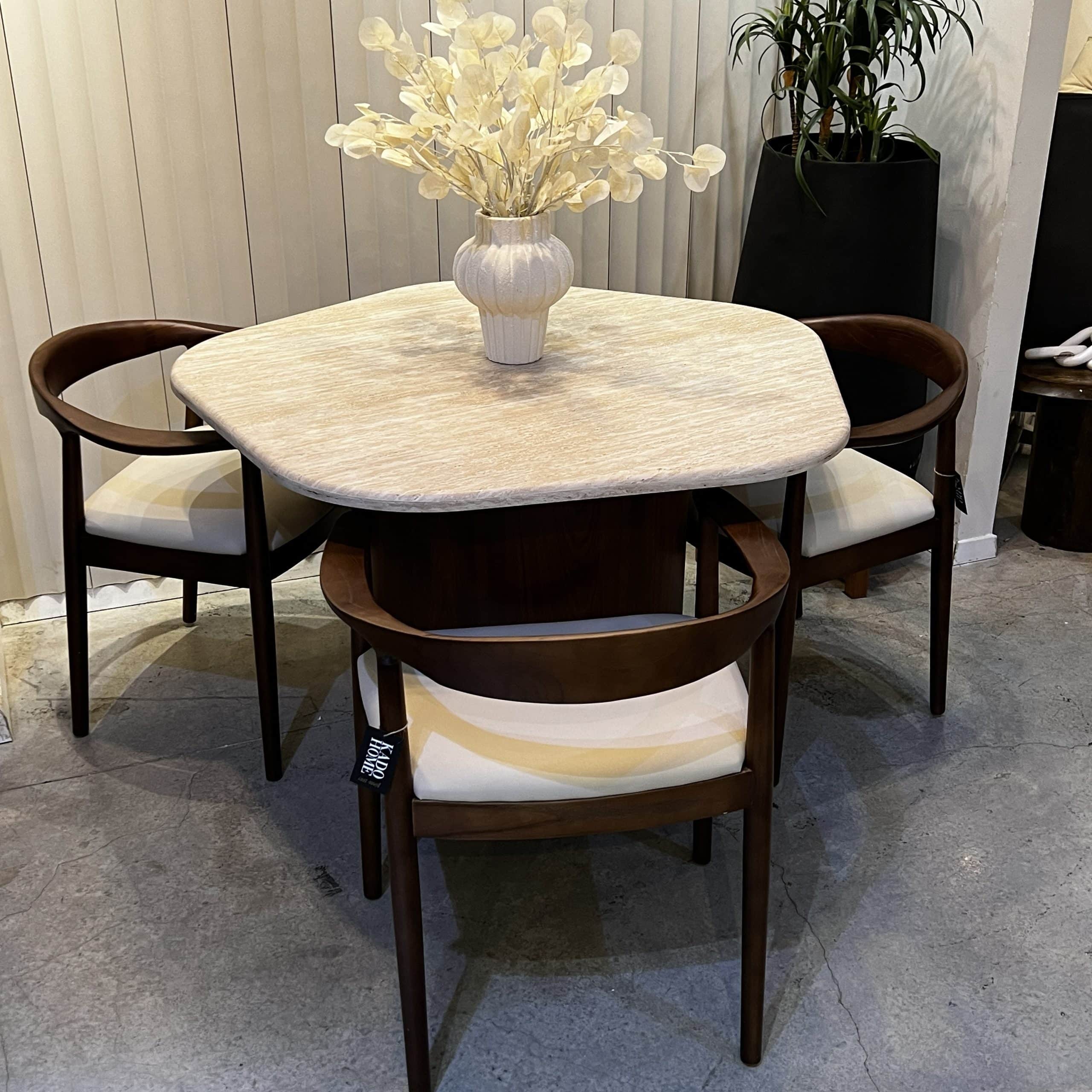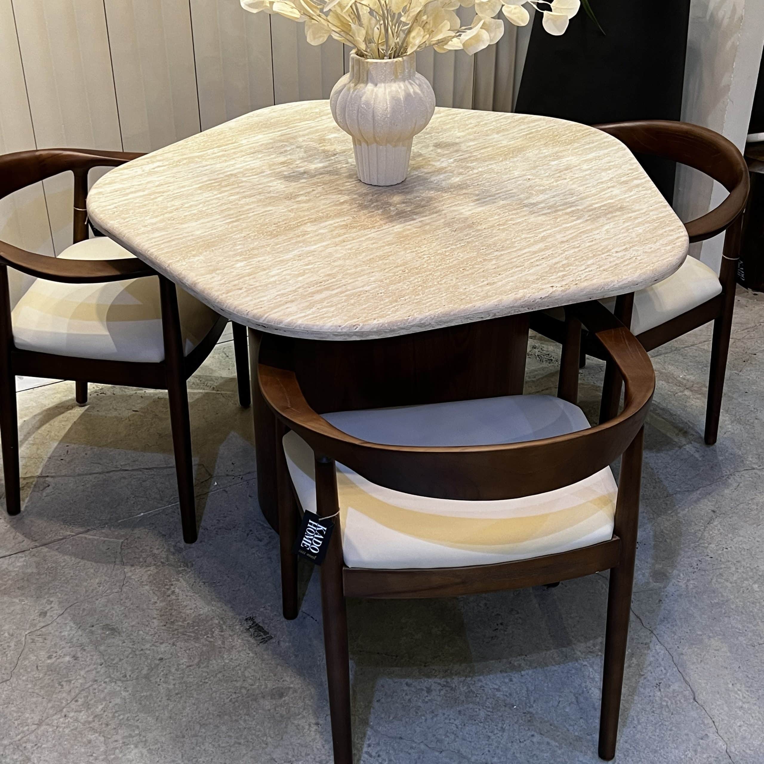 פינת אוכל מעוצבת דגם פרח טרוורטין רגל אגוז