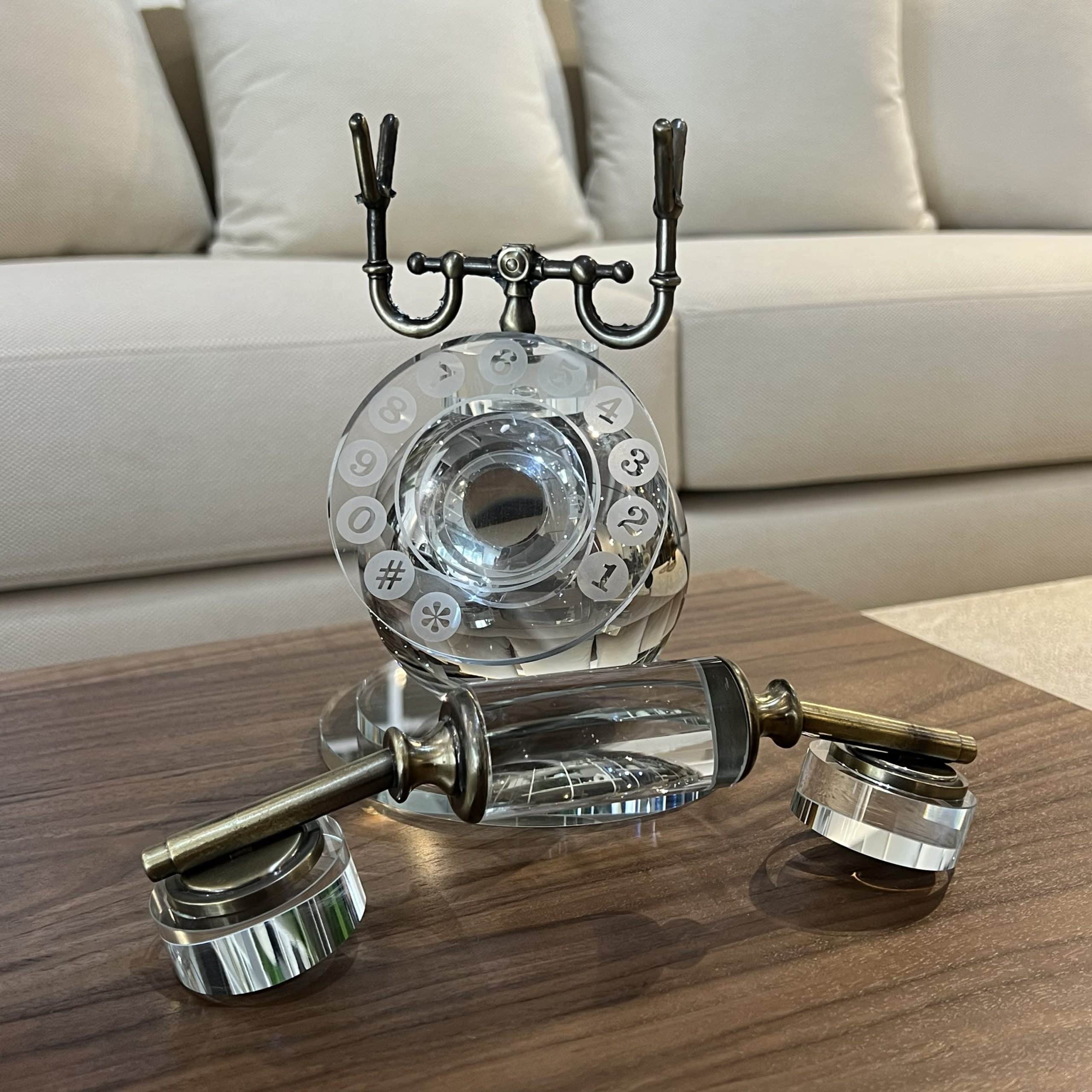 פסל טלפון ייחודי שמעורר נוסטלגיה עם ניחוח של יוקרה. בעיצוב רטרו מדויק ובגימור ניקל מבריק עם נגיעות לבן אלגנטי, הוא משדרג כל מדף, שידה או פינת עבודה.