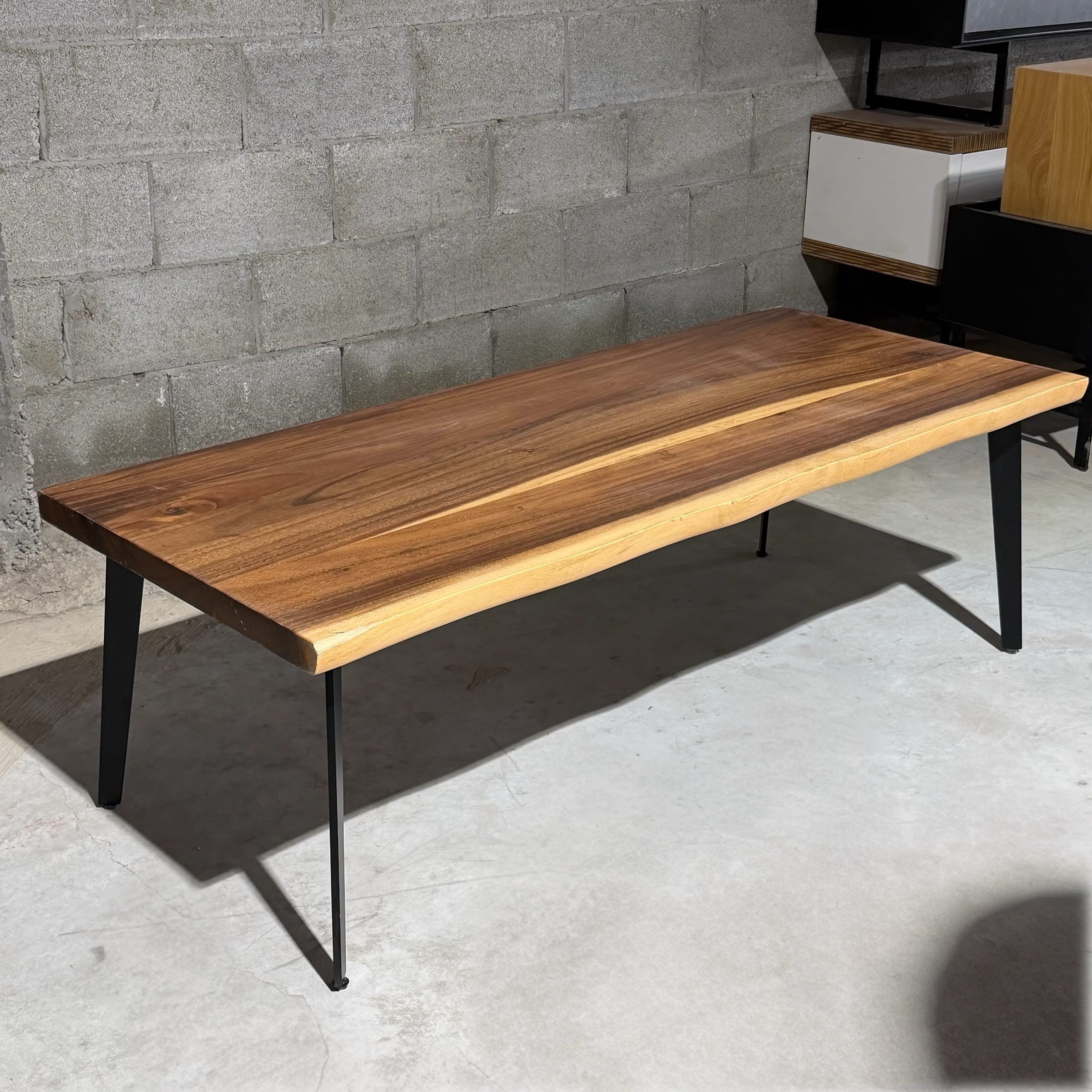 שולחן סלון גזע מלבני עם רגלי לייזר שחורות הוא השילוב המושלם בין טבע לאורבניות מודרנית.