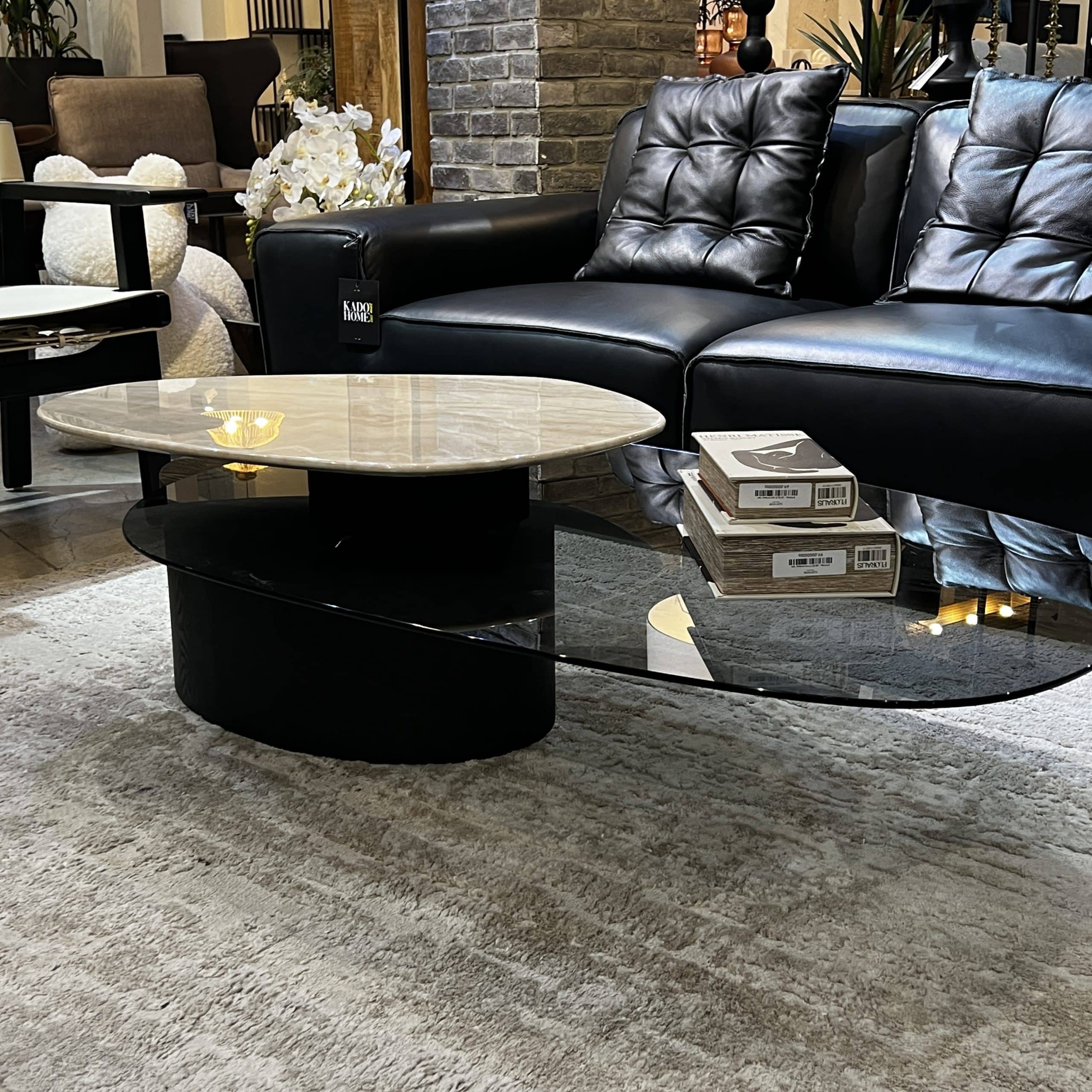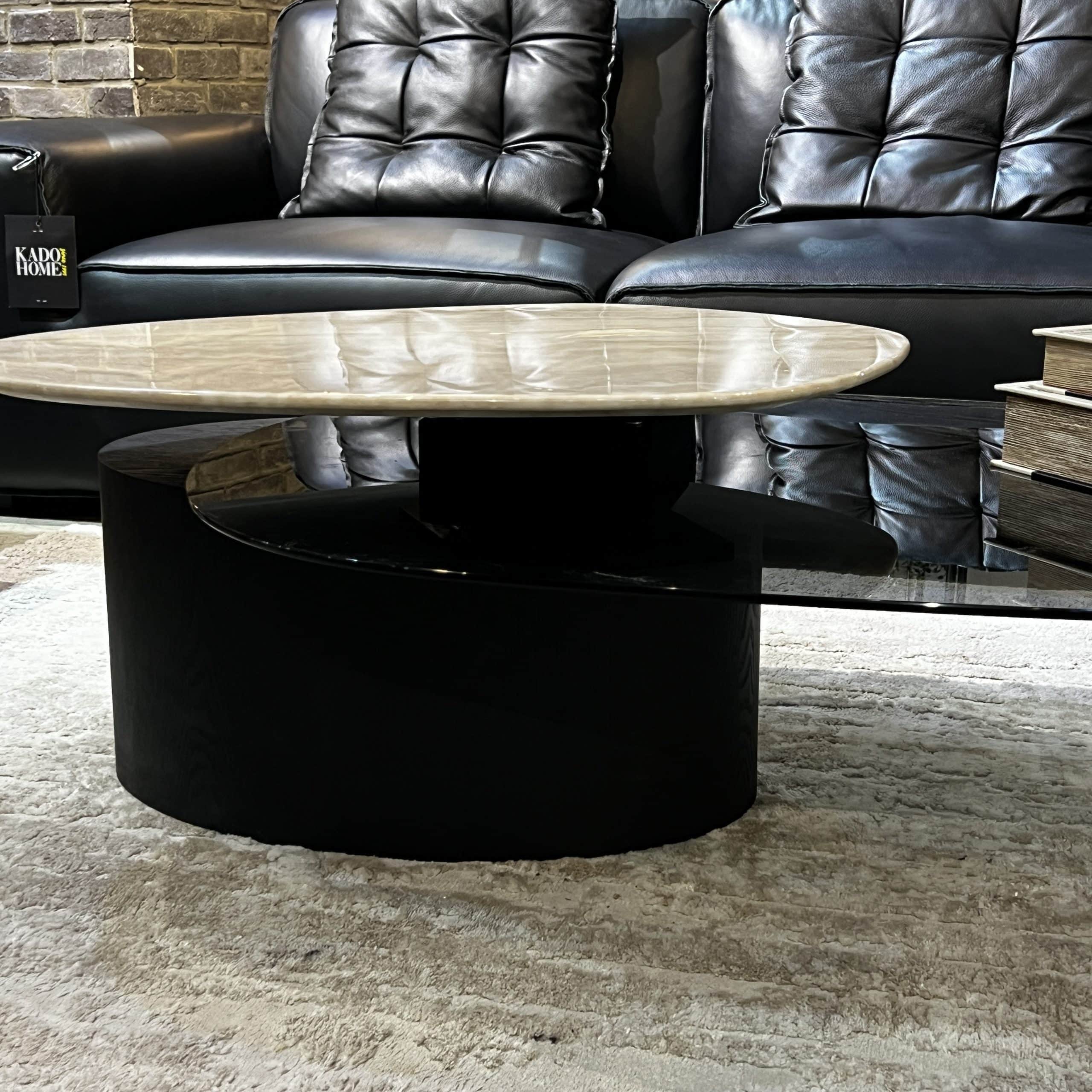 שולחן סלון ויוו זכוכית שחורה פלטה טרוורטין נשלפת דגם סופיטל – limited edition!
